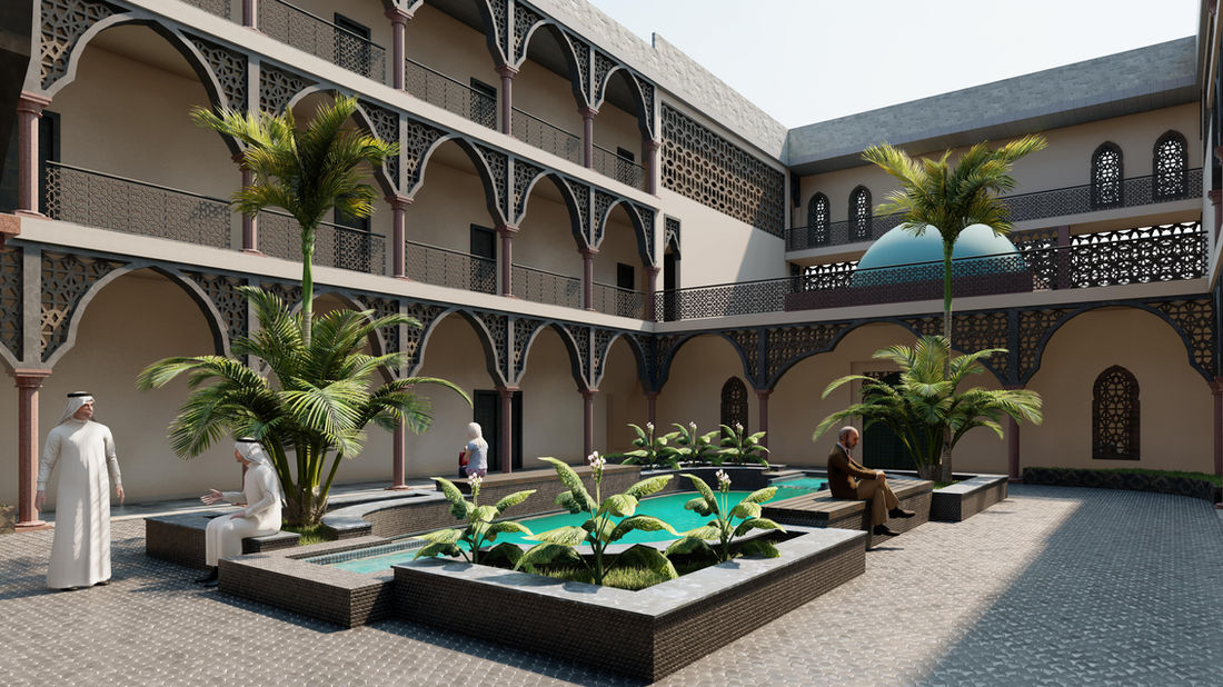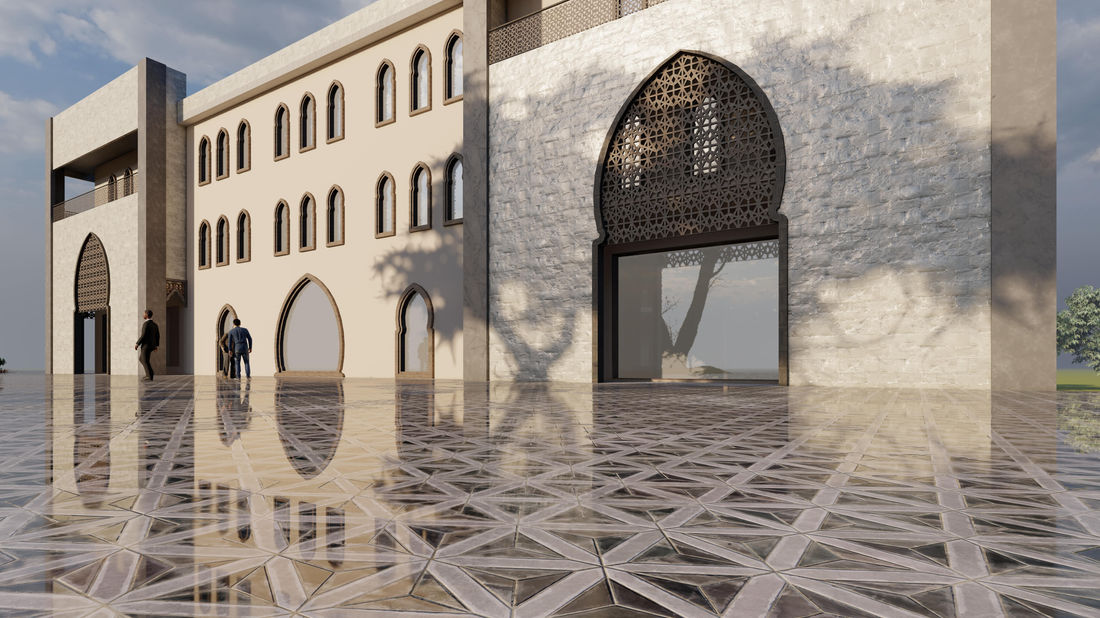 Design of a multifunctional center for Bektashi with a surface area of 4 956 m² which consists of 3 floors and a partially underground floor used as a restaurant